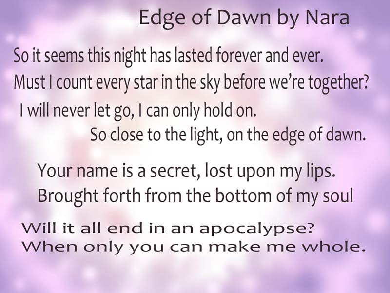This did not fit in with the Edge of Dawn plot line, so it’s a single story. The kindle book is up at http://www.amazon.com/dp/B00JCFR4S0 and the print version should be ready mid April. I’ll also get a .pdf and .epub done as well. Then I’ll be swamped til after May due to conventions. In April I have Altcon and Freecon, then in May I have Momocon. Hope to see you there:)